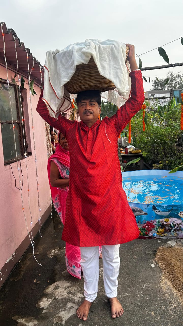 जमशेदपुर: न्यूज़ लहर न्यूज़ पोर्टल के मलिक वरिष्ठ अधिवक्ता संजय कुमार सिंह के आवास पर छठ पूजा संपन्न हुई। इस मौके पर संजय कुमार सिंह पूजा सामग्री का दौरा उठाकर कृत्रिम छठ पूजा स्थल पर पहुंचे।