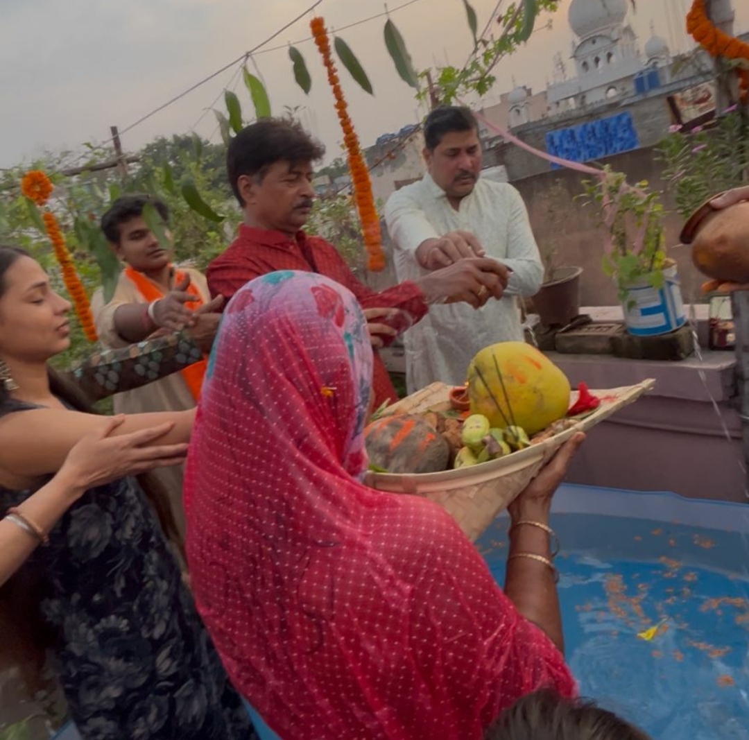 यहां उनके परिवार के लोग भी मौजूद रहे। सभी ने छठ पूजा की। डूबते सूर्य को अर्घ्य दिया गया।