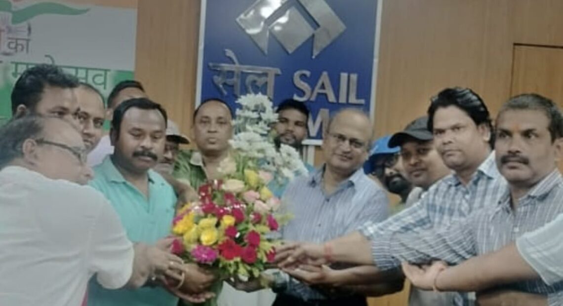 सेल गुवा के नव पदस्थापित मुख्य महाप्रबंधक सी. बी. कुमार को पदभार ग्रहण करने पर आज संयुक्त यूनियन, बेरोजगार संघ एवं सेवानिवृत्त कर्मियों के प्रतिनिधिमंडल ने गुलदस्ता भेंट कर बधाई दी और उनसे शिष्टाचार भेंट की। इस दौरान संगठन के प्रतिनिधियों ने गुवा सेल से जुड़े विभिन्न महत्वपूर्ण मुद्दों पर चर्चा की। बैठक में संयुक्त यूनियन के प्रतिनिधियों ने मजदूरों की समस्याओं, स्थायी रोजगार की मांग, सेवानिवृत्त कर्मियों के बकाया भुगतान, आवास मरम्मत कार्य और स्थानीय युवाओं को प्राथमिकता देने जैसे मुद्दे उठाए। उन्होंने कहा कि वर्षों से लंबित कई मांगें अब तक पूरी नहीं हो पाई हैं,