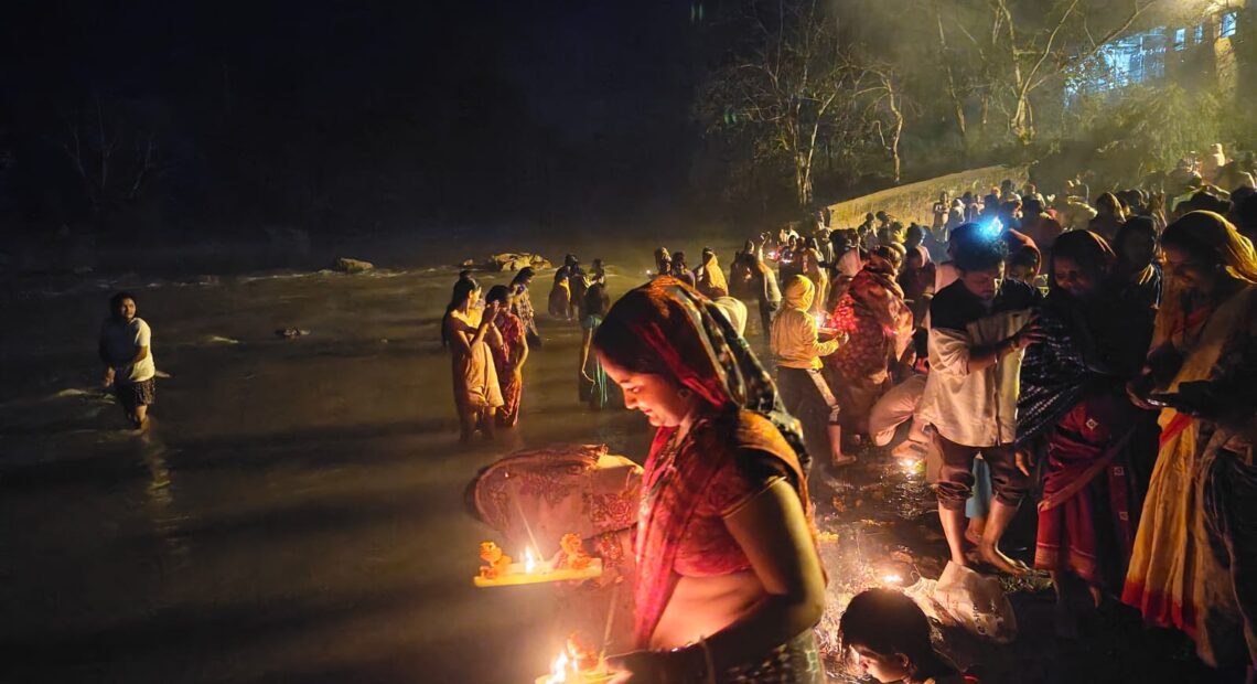 कार्तिक पूर्णिमा पर श्रद्धालुओं ने कारो नदी में लगाई आस्था की डुबकी