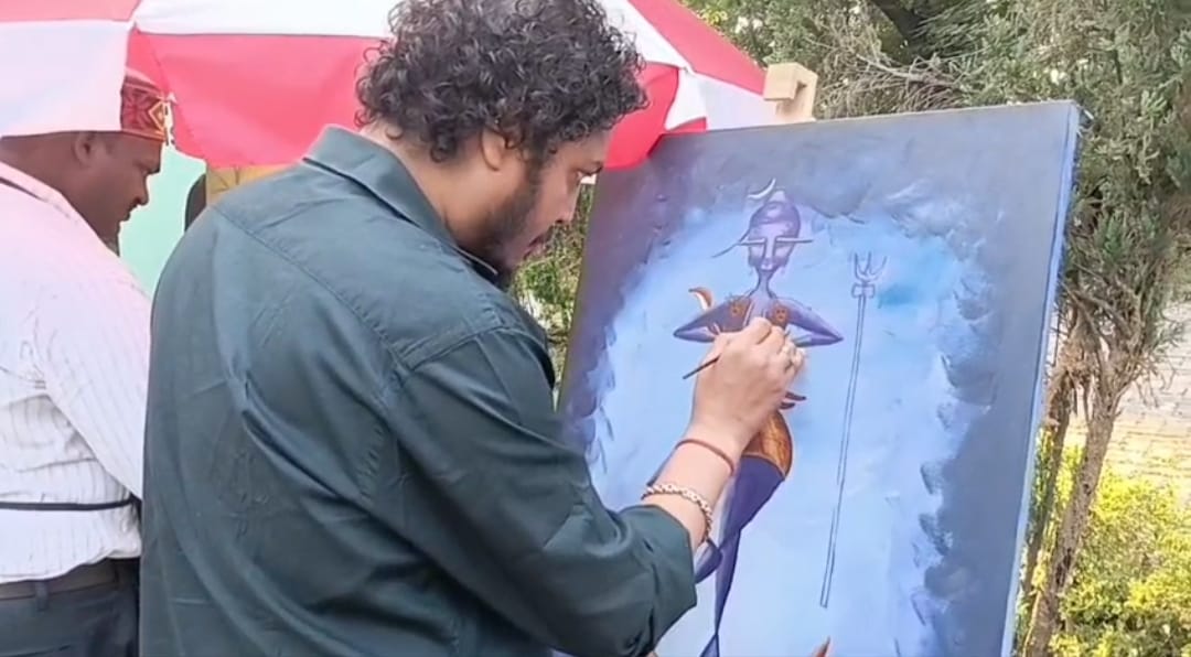 जमशेदपुर : जमशेदपुर में नेशनल आर्ट कैंप प्रोग्राम रविवार को संपन्न हुआ। यह चार दिवसीय प्रोग्राम था। यह कार्यक्रम मानगो में वन विभाग के गेस्ट हाउस परिसर में संपन्न हुआ। इस कार्यक्रम में देश के विभिन्न शहरों से कलाकार अपनी कला का प्रदर्शन करने आए थे। इनमें भोपाल, दिल्ली, चेन्नई आदि के कलाकार शामिल हैं। सभी ने अपनी कला का प्रदर्शन किया। रांची से है दीपांकर कर्मकार ने भी अपनी पेंटिंग प्रस्तुत की है। उन्होंने यह पेंटिंग इसी कार्यक्रम में बनाई। दीपांकर कर्मकार रांची विश्वविद्यालय में काम करते हैं। उन्होंने बताया कि उनकी पेंटिंग यह दर्शाती है कि क्षेत्र का विकास पर्यावरण का विनाश कर नहीं होना चाहिए। उन्होंने पेंटिंग में दिखाया है कि किस तरह पेड़ काटा जा रहा है और उसकी वजह से पर्यावरण खराब हो रहा है। उन्होंने कहा कि अगर पेड़ काटे जाएं तो एक पेड़ के बदले 10 पेड़ लगाने चाहिए।