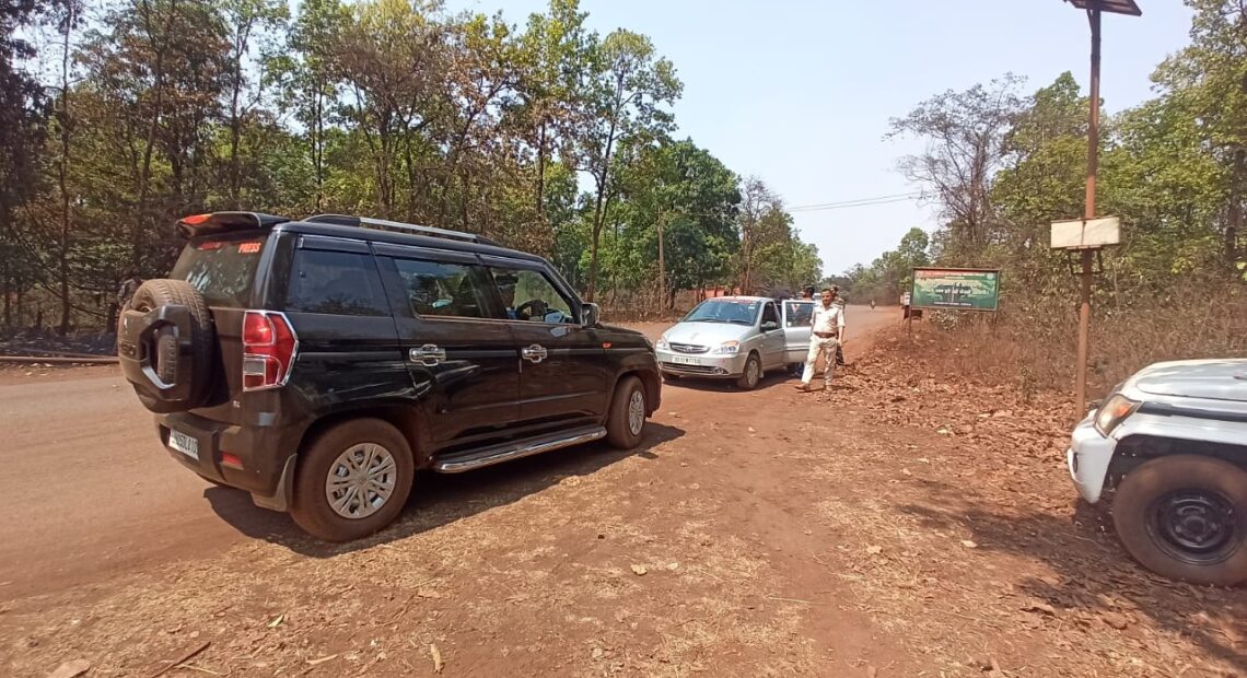 बड़ाजामदा फॉरेस्ट कैम्प, नाका गेट के समक्ष बड़ाजामदा थाना द्वारा वाहन चेकिंग