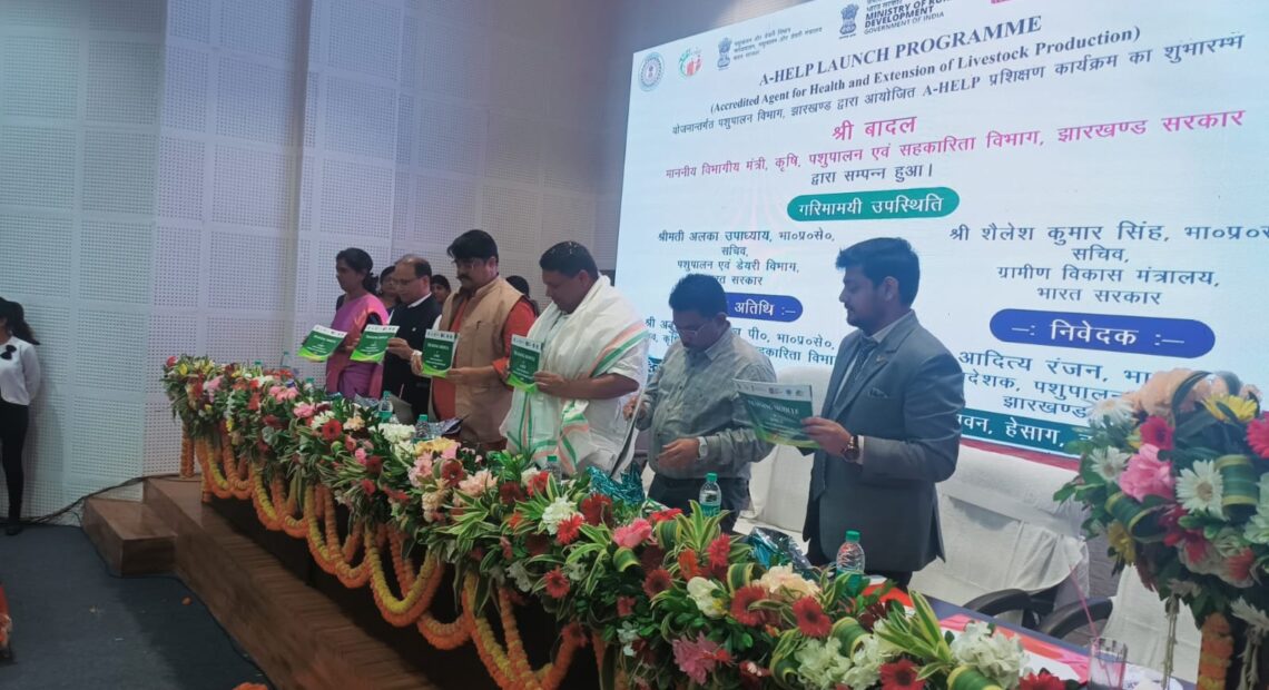 झारखंड:रांची के ग्रामीण सहित शहरी क्षेत्रों के पशुपालकों को पशु चिकित्सा संबंधी समस्याओं से निजात दिलाने के लिए हेसाग स्थित पशुपालन एवं सहकारिता भवन के सभागार में ए-हेल्प योजना का शुभारंभ किया गया। योजना का शुभारंभ करते हुए कृषि, पशुपालन एवं सहकारिता मंत्री श्री बादल ने कहा कि राज्य की जीडीपी में कृषि और पशुपालन का 20 प्रतिशत योगदान सुनिश्चित करने का लक्ष्य सरकार ने रखा है। इसी के मद्देनजर विभाग विभिन्न स्तर पर योजना की शुरुआत कर रहा है। उन्होंने ए-हेल्प के संबंध में जानकारी देते हुए कहा कि इस योजना से राज्य के ग्रामीण क्षेत्र की लाइफ स्टाईल में बदलाव आयेगा और पशुपालकों की सोच में भी परिवर्तन आयेगा। उन्होंने कहा कि ए-हेल्प योजना के तहत पशु सखियों को प्रशिक्षित करने का लक्ष्य रखा गया है, क्योंकि पशुपालन को लेकर पंरपरावादी सोच को बदलने की जरूरत है, ताकि वैज्ञानिक पद्धति का समावेश कर इसे उद्यमिता का रूप देते हुए बदलाव किया जा सके।