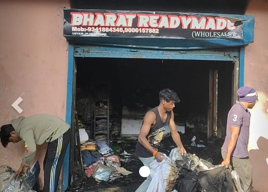 गोलमुरी हिंदू बस्ती में कपड़ा दुकान में लगी आग, लाखों की संपत्ति जली