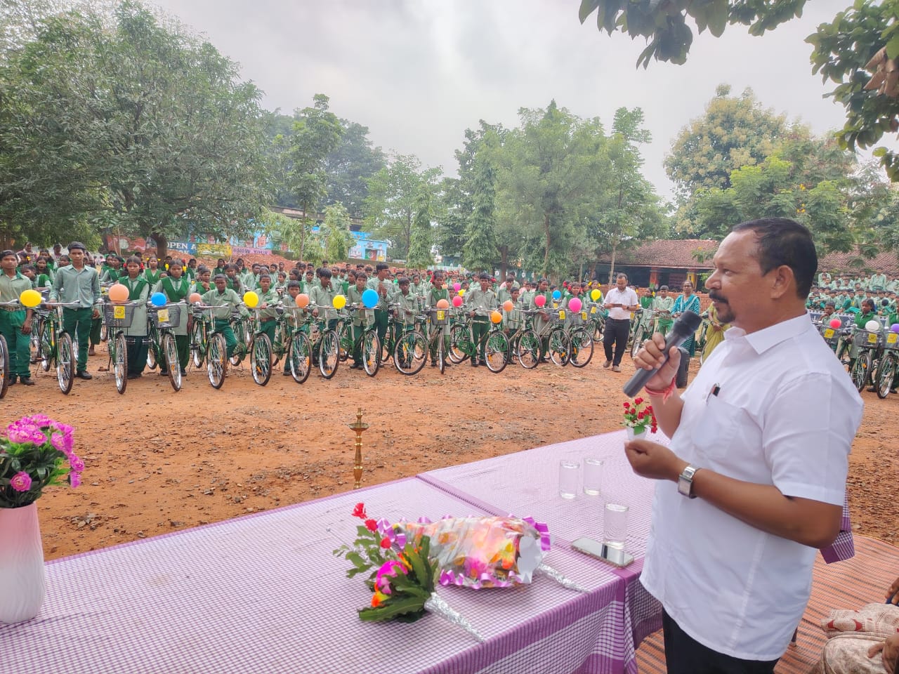 चाईबासा: राजकीयकृत उच्च विद्यालय हाटगम्हरिया में शुक्रवार को ‘उन्नति का पहिया’ कार्यक्रम के तहत स्कूली छात्र-छात्राओं के बीच साइकिल वितरण कार्यक्रम का आयोजन किया गया। इस अवसर पर झारखंड सरकार के मंत्री दीपक बिरुवा मुख्य अतिथि के रूप में उपस्थित थे। उन्होंने स्वयं छात्र-छात्राओं को साइकिल प्रदान की।