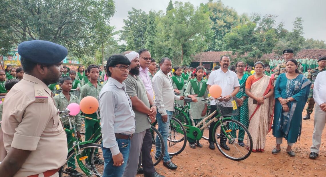 चाईबासा: राजकीयकृत उच्च विद्यालय हाटगम्हरिया में शुक्रवार को ‘उन्नति का पहिया’ कार्यक्रम के तहत स्कूली छात्र-छात्राओं के बीच साइकिल वितरण कार्यक्रम का आयोजन किया गया। इस अवसर पर झारखंड सरकार के मंत्री दीपक बिरुवा मुख्य अतिथि के रूप में उपस्थित थे। उन्होंने स्वयं छात्र-छात्राओं को साइकिल प्रदान की।