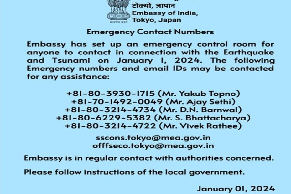 World जापान में भूकंप के बाद भारतीयों के आपातकालीन नंबर जारी न्यूज़ लहर संवाददाता जापान: जापान में भूकंप के बाद भारतीयों के लिए भारतीय दूतावास ने आपातकालीन नंबर जारी की।जिसके माध्यम से भारतीयों मदद के परिजनों को जानकारी दी जाएंगी। Tags: Post navigation Previous Previous post: पश्चिमी जापान में 7.5 तीव्रता के भूकंप से चौंकी दुनिया; सूनामी की चेतावनी, लाखों को खतराNext Next post: कंधार विमान अपहरणकर्ता आतंकवादी मसूद अजहर की बम मारकर हत्या Related Posts सुपरपावर है भारत, PM मोदी को करना चाहिए वैश्विक मामलों में हस्तक्षेप.. NATO देश के मंत्री का बड़ा बयान World Political News:कोलकाता में मिला बंग्लादेश के सांसद का शव, हत्या की आशंका, मचा हड़कंप सावधान! भारत की एयर स्ट्राइक के बाद पाकिस्तान सोशल मीडिया पर झूठ फैलाने की कोशिश कर रहा है*