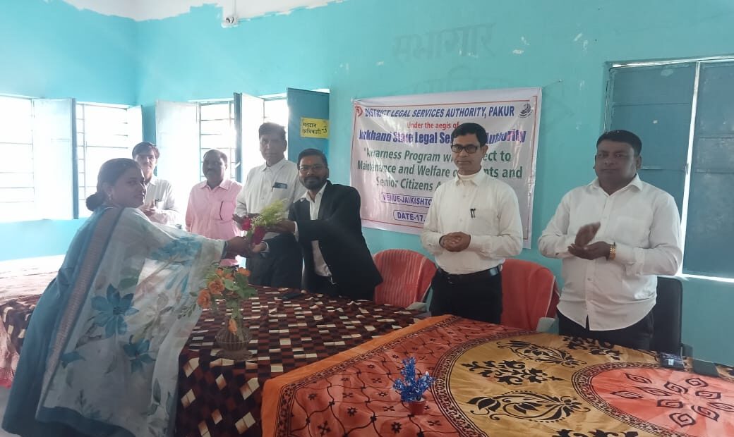 जमशेदपुर: जिला विधिक सेवा प्राधिकार, पाकुड़ की ओर से झालसा रांची के निर्देशानुसार जयकिस्टोपुर पंचायत भवन में “माता-पिता और वरिष्ठ नागरिकों के भरण-पोषण एवं कल्याण अधिनियम 2007” विषय पर जागरूकता कार्यक्रम आयोजित किया गया। कार्यक्रम का संचालन प्रधान जिला एवं सत्र न्यायाधीश सह अध्यक्ष, जिला विधिक सेवा प्राधिकार पाकुड़ शेष नाथ सिंह के निर्देश पर किया गया।