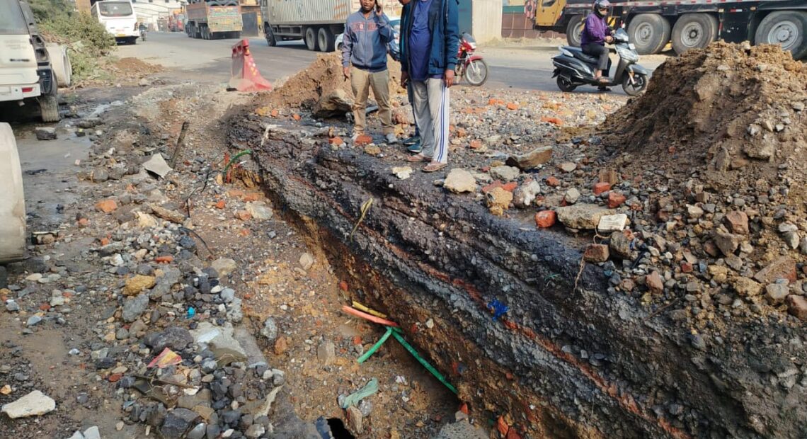 Jamshedpur : मानगो एनएच-33 पर सहारा सिटी के सामने शुक्रवार को नाला निर्माण के लिए हो रही खुदाई के दौरान बड़ा हादसा हो गया। एनएचएआई के निर्देश पर काम कर रही जेसीबी मशीन से मानगो जलापूर्ति की मुख्य पाइप लाइन फट गई। पाइप क्षतिग्रस्त होते ही इलाके में पानी की भारी किल्लत शुरू हो गई। यहां करीब पांच हजार घरों की नल सप्लाई पूरी तरह ठप हो गई है।