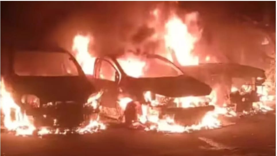 मंत्री की कार से धक्का लगने के बाद शुरू हुआ विवाद, अनेकों गाड़ी और दूकानों में आगजनी