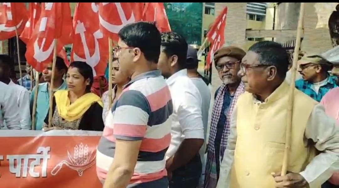 माइक्रोफाइनेंस कंपनियों पर रोक लगाने की मांग को लेकर भारतीय कम्युनिस्ट पार्टी ने साकची में डीसी ऑफिस पर किया प्रदर्शन