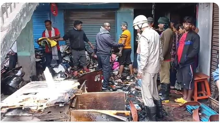 पूजा होने से पहले दुकान में लगी आग, चालीस लाख के कपड़े जलकर हुए खाक