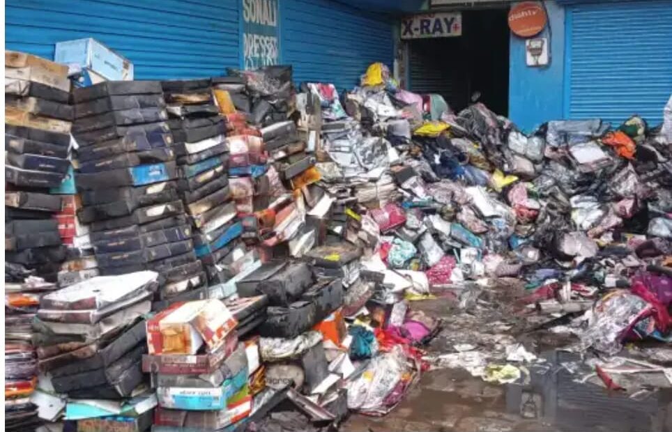 पूजा होने से पहले दुकान में लगी आग, चालीस लाख के कपड़े जलकर हुए खाक