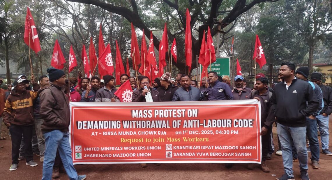 उन्होंने सरकार से नए कानून को वापस लेने और पुरानी व्यवस्था को कायम रखने की मांग की। इस विरोध कार्यक्रम में यूनाइटेड मिनिरल्स वर्कर्स यूनियन, क्रांतिकारी इस्पात मजदूर संघ, झारखंड मजदूर यूनियन तथा सारंडा युवा बेरोजगार संघ के प्रतिनिधि भी शामिल थे। नेताओं ने एकजुट होकर श्रमिक हितों की रक्षा के लिए व्यापक आंदोलन चलाने की बात कही। सभा की अध्यक्षता सीटू के अध्यक्ष इंद्रमणि बेहरा ने की। इस दौरान महासचिव रमेश गोप, झारखंड मजदूर यूनियन के महामंत्री हेमराज सोनार, एचएमएस के महासचिव राकेश सुंडी, सारंडा युवा बेरोजगार संघ के अध्यक्ष उदय कुमार सिंह, मलय पाणिग्राही, जगदीश उरांव, टीआर पटनायक सहित कई नेता और मजदूर मौजूद रहे। कार्यक्रम के अंत में यूनियन ने चेतावनी दी कि मांगों पर विचार नहीं हुआ तो आंदोलन और तेज किया जाएगा।
